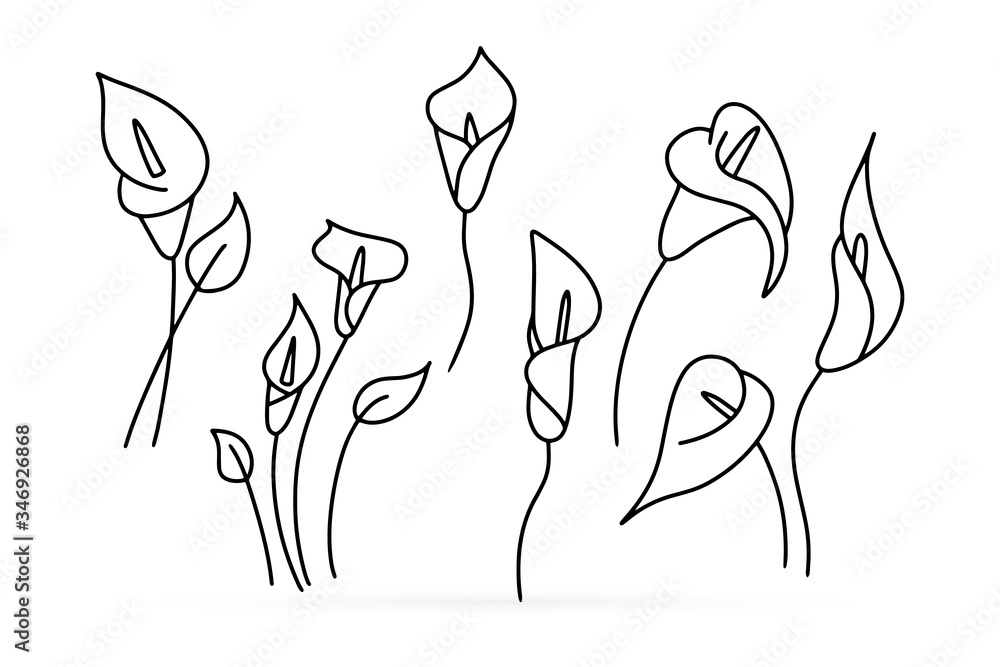 Sticker Plakat Doodle calla lilies icon isolated on white