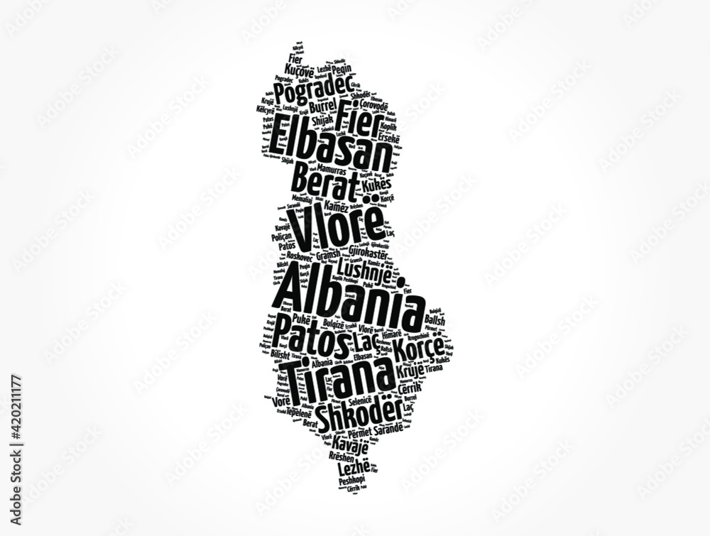Sticker Plakat List of cities and towns in Albania, map word cloud collage, business and travel