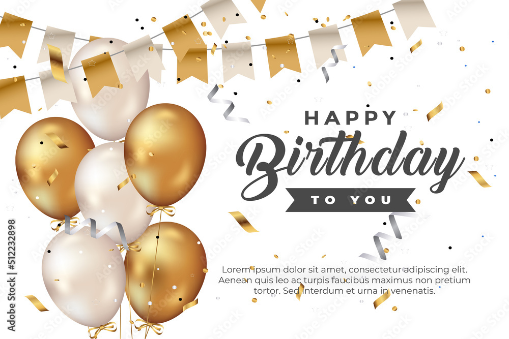 Sticker Plakat happy birthday greeting template with balloon, birthday flag and glitter