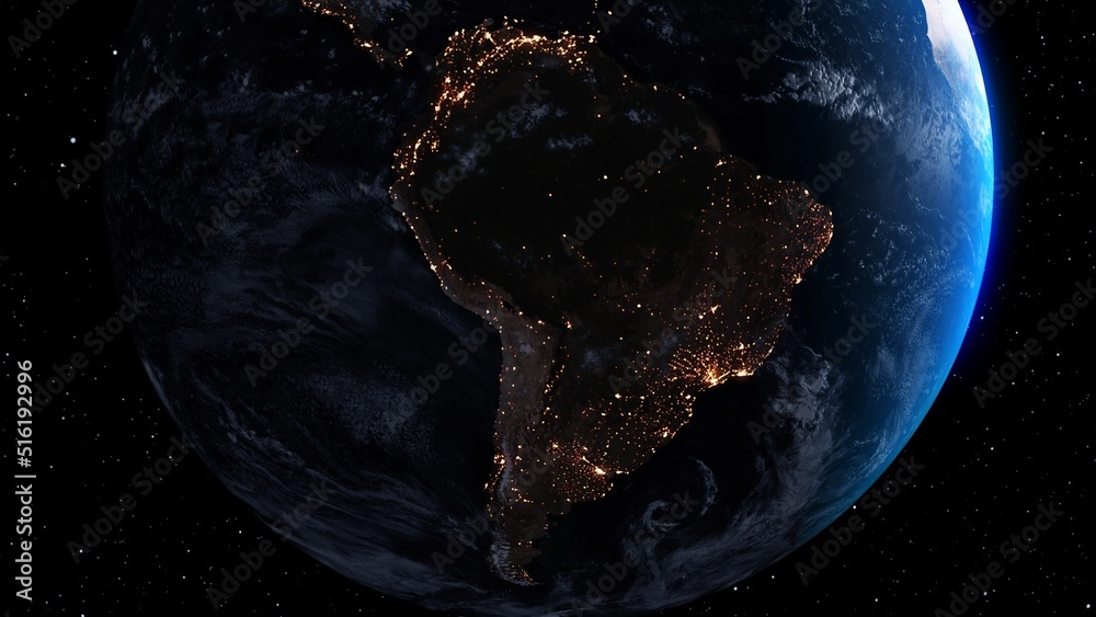 Sticker Plakat Planet earth with realistic geography surface and orbital 3D cloud atmosphere