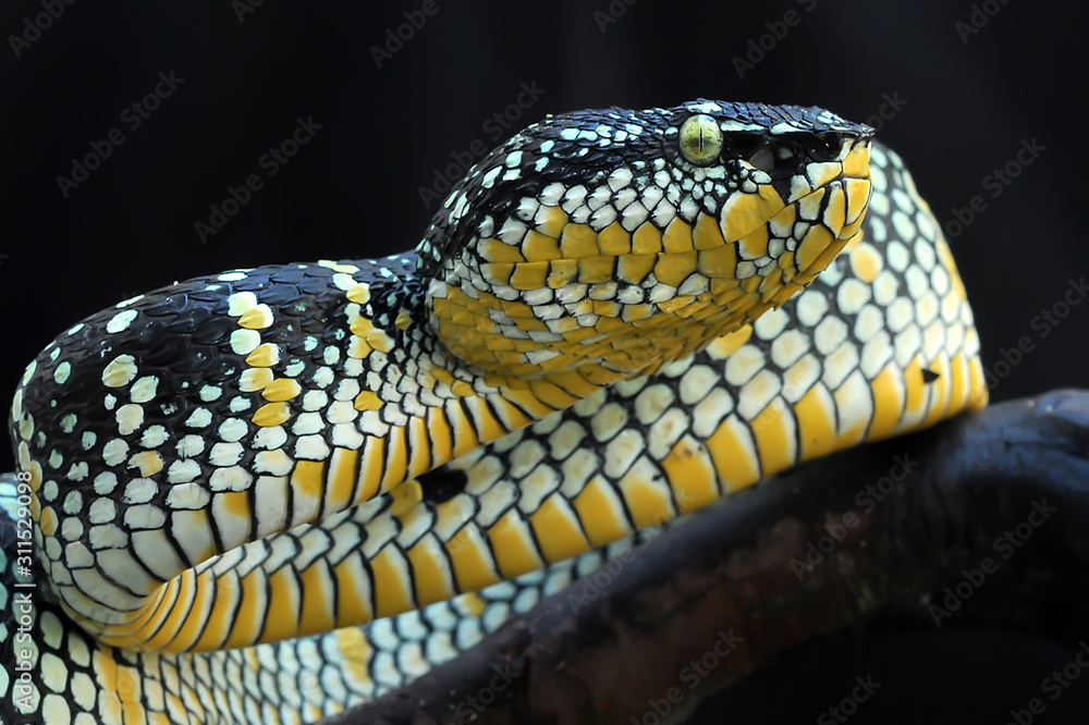 Foto Tropidolaemus wagleri Bandotan temple is a type of poisonous tree snake from the Crotalinae tribe